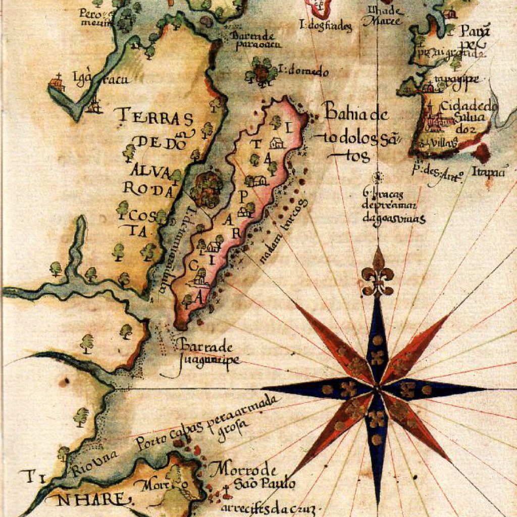 Bahia de Todos os Santos. Pormenor do Roteiro de todos os sinais (……) que há na Costa do Brasil, de Luís Teixeira, 1587 (c.). Biblioteca Nacional da Ajuda. Luís Teixeira (c. 1545-1604), filho do também cartógrafo Pedro Teixeira, mestre de fazer cartas de marear a 23 de maio de 1558 e irmão de Domingos Teixeira, que fazia cartas de marear desde 1565 e de Marcos Fernandes, com carta desse ofício em 1592. Seria depois pai de João Teixeira Albernaz, o velho (c. 1575-1662) e Pedro Teixeira Albernaz (c. 1595-1662), entre outros. Em 18 de outubro de 1564 teve autorização para […]